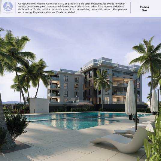 Apartamentos de 1, 2 y 3 dormitorios con áticos disponibles de 4 habitaciones con terraza privada dotada de solárium, piscina y jacuzzi.