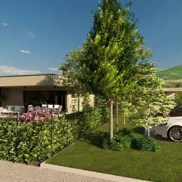 Villa 2 ligt op de eerste rij in het centrum van Rossar Dream Village. De woning van 589,19 m2 combineert een ruime buitenruimte met exclusief wooncomfort op een droomlocatie. De tuin van 454 m2 en een ruim terras nodigen je uit om ontspannen en zonnige uren buiten door te brengen. Een bijzonder hoogtepunt is het privézwembad, dat harmonieus is geïntegreerd in de tuin en verfrissing biedt op warme dagen.