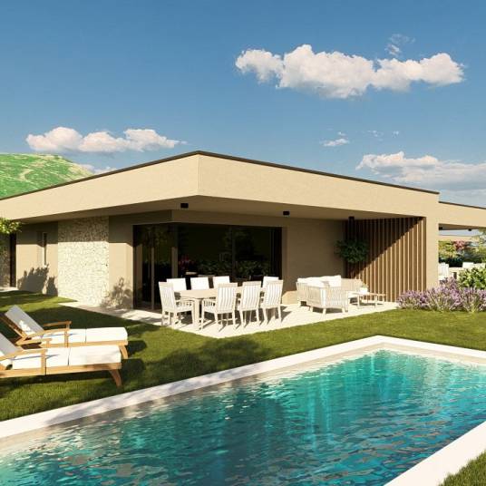 Villa 2 ligt op de eerste rij in het centrum van Rossar Dream Village. De woning van 589,19 m2 combineert een ruime buitenruimte met exclusief wooncomfort op een droomlocatie. De tuin van 454 m2 en een ruim terras nodigen je uit om ontspannen en zonnige uren buiten door te brengen. Een bijzonder hoogtepunt is het privézwembad, dat harmonieus is geïntegreerd in de tuin en verfrissing biedt op warme dagen.