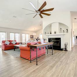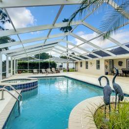 Het hoogtepunt van deze woning is het uitgestrekte zwembadgedeelte, met een groot, sprankelend zwembad dat eindeloze uren van ontspanning en plezier belooft. Het pooldeck, compleet met waterval en palmbomen, biedt voldoende ruimte voor zonnebaden, dineren in de buitenlucht of het organiseren van bijeenkomsten. De royale omvang van het dek zorgt ervoor dat u uw gasten comfortabel kunt ontvangen en optimaal kunt genieten van de buitenlevensstijl van Florida.