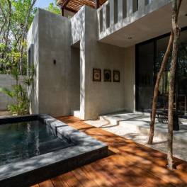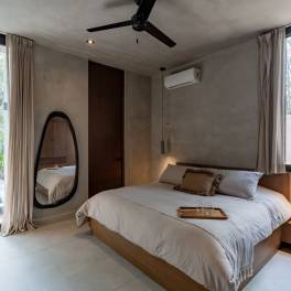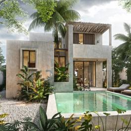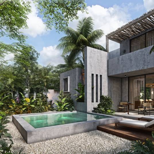 Hier woon je in een vrijstaande villa op een royaal perceel, omringd door tropische vegetatie en privacy. De woningen kenmerken zich door warme, natuurlijke materialen, hoge plafonds, open leefruimtes en grote raampartijen die binnen en buiten naadloos met elkaar verbinden. Elke woning beschikt over een privézwembad, ruime terrassen en de mogelijkheid tot een rooftop of extra slaapkamer — perfect voor zowel eigen gebruik als verhuur.