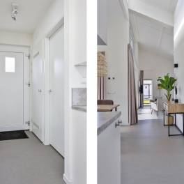 Aan de achterzijde bevindt zich een inpandige berging met opstelplaats voor de technische installaties, extra bergruimte en mogelijkheid voor een wasmachineopstelling. De gehele woning is afgewerkt met vloerverwarming en een strakke, onderhoudsvriendelijke vloerafwerking.