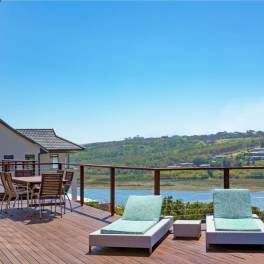 De stapeldeuren in alle woonruimtes komen uit op een uitgestrekt terras en bieden een indrukwekkend 180 graden uitzicht op de riviermonding. Het dek is ontworpen voor hosting en beschikt over een overloopzwembad, een overdekte houten barbecueplek, een geïntegreerde bar met Caesar-stenen werkbladen en voldoende zit- en eetruimte.