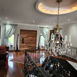 Als u de portiekingang binnengaat, wordt u onmiddellijk getroffen door de grootsheid van de granieten trap, versierd met een elegante smeedijzeren balustrade, die afdaalt naar het uitgaansgebied. Deze ruimte omvat een formele lounge met een dubbelzijdige open haard die aansluit op de studeerkamer, evenals een eetkamer, een geluiddichte bioscoop en een gastvrije familiekeuken, die de meest veeleisende culinaire liefhebber zeker zal bekoren.