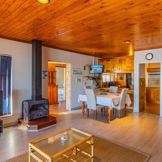 The expansive living areas are filled with natural light and open out onto balconies and patios that invite you to soak in the incredible sea views. For chilly coastal evenings, a cozy fireplace in the main lounge creates the perfect atmosphere for relaxation and warmth.