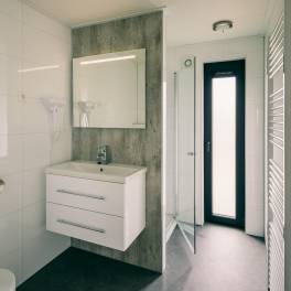 Buiten vind je het terras met tuinmeubilair, zonnebedden en een parasol. Het ruime terras bied veel ruimte en privacy!